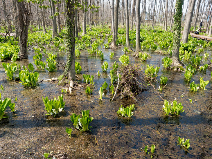 ここ数日間、初夏のような暖かい日が続いたので、ミズバショウの花が終わっていなければよいのですが…。