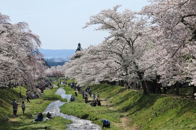 定番である「観音寺川の桜並木」を上流側から眺めてみました。