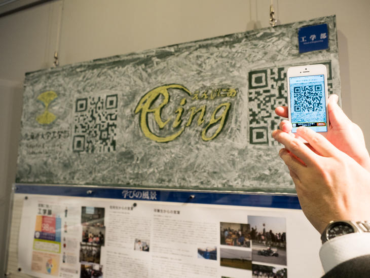 工学部のエリアですが、手書き二次元コードはアート作品に見えました。