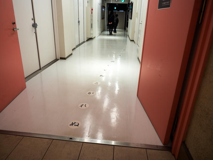 途中、階段へ続く通路の床に文字が続いています。