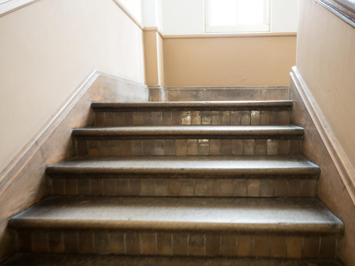 博物館内、特に階段は、しばし学術的な空気を離れ、歴史的建造物の趣きを感じるとき。
