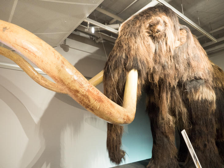 写真のマンモスは、ロシアのサハ共和国で馬の毛40頭分を使って再現した世界にふたつしかないうちのひとつだそう。