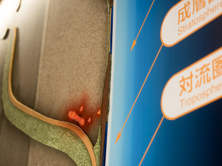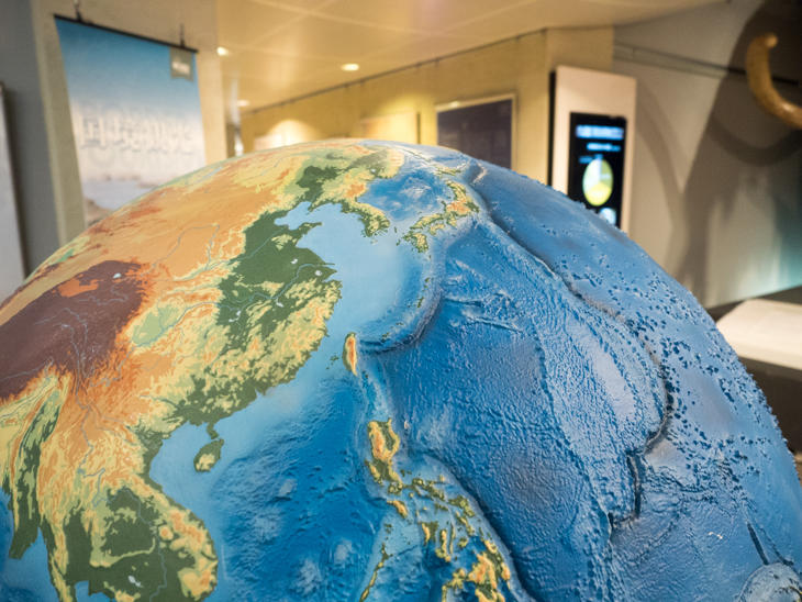 隣の部屋に入ると視界に入ってくるのは、100万分の1のスケールの地球断面図パネル。