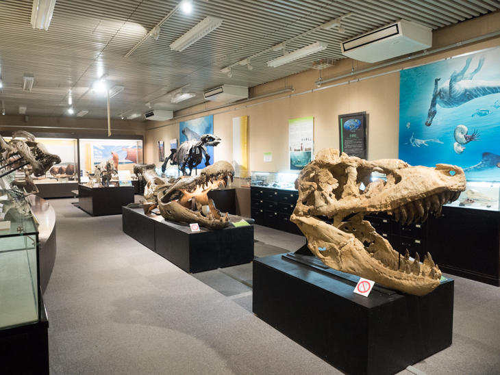 「古生物標本」エリアは、恐竜の復元骨格模型がずらり。