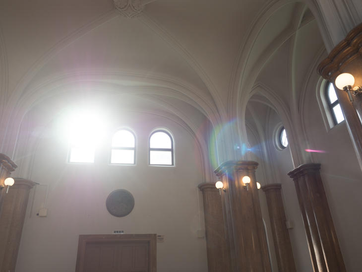 半円球の天井と大理石の柱、そして四方に掲げられたレリーフが印象的です。