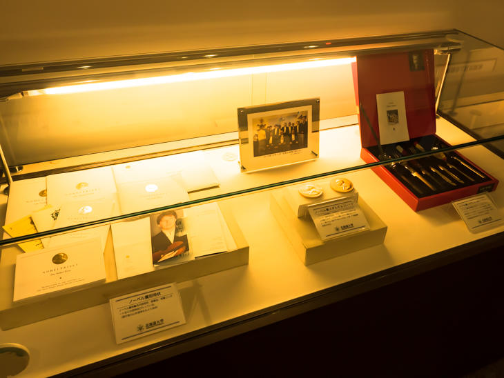 2010年にノーベル化学賞を受賞した鈴木章名誉教授の記念展示室や過去にノーベル賞にノミネートされた研究者の展示があります。