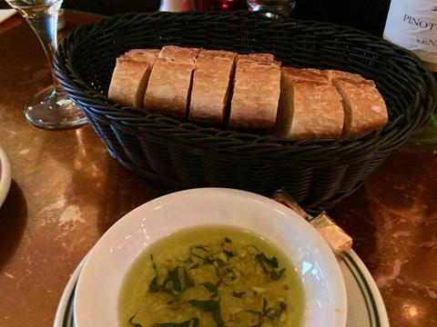 かつてはオーダー後直ぐパンを出すのが当たり前だったけど、最近はめっきり少なくなった。 さすが老舗ちょっと嬉しい誤算で出てきたぁ〜。 しかも "通称:貴方の為に切りましたカット" これはタクアン切ると下が繋がってる状態、バケットを下までカットせずに一本のバケットから切って用意した。 1ピースずつ数個では寄せ集めかもしれないでしわざわざ感をも出るわけね。