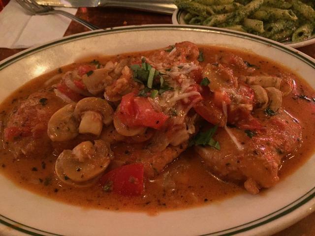 マルサラソース用のマッシュルームを切ってる最中。 マルサラというイタリアのワインとマッシュルームのソースはイタリアン-アメリカン(Italian-American)の定番メニュー。 イタリアンアメリカンはイタリア系アメリカ人? また、イタリア料理のテクニックでアメリカに適応したイタリア料理のスタイルで伝統的なイタリア料理のアメリカ版。 ボロネーゼに使う挽き肉を利用してハンバーグを作ってみたりしたわけ。 チキンマルサラは、イタリアにもあるようだけど粉をつけて焼いたチキンにマッシュルームとシチリアのワイン(マルサラワイン)を煮詰めたソースをかけたもの。