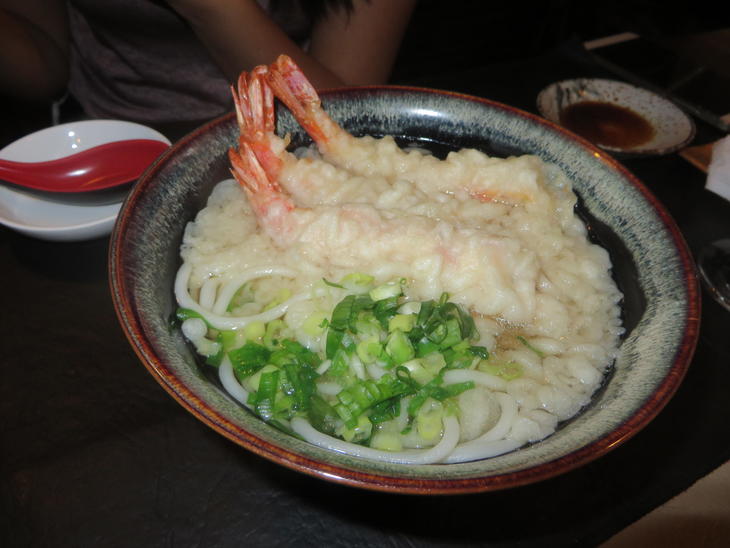 天ぷらうどんに、きちんと七味もついてきます。(三本あります!) Tenpura udon
