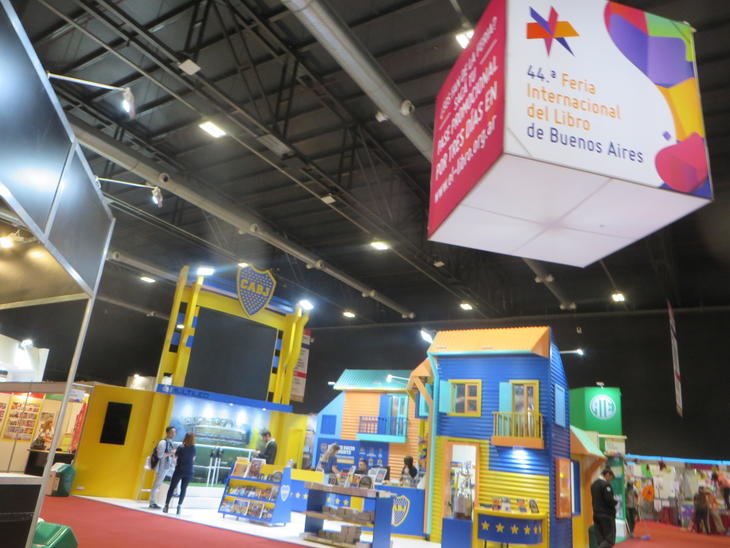 右のメッシがいる緑のパビリオンPABELLON VERDE(パベジョン ベルデ)へはアルゼンチンの一般的な書籍店、出版社の展示があります。