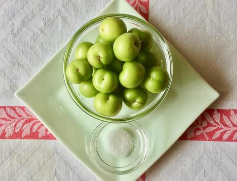 大粒のサクランボくらいの大きさで、真ん中に種があってやっぱりプラム、いや緑色の大粒サクランボ。 お塩つけて食べると酸味が落ち着き味がしまって美味しいわ ^ ^v スイカにお塩かけると味がしまって甘さがますのと同じだね。
