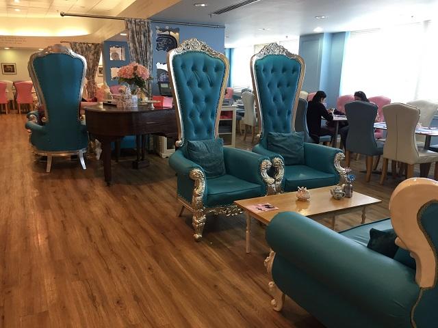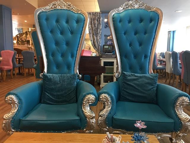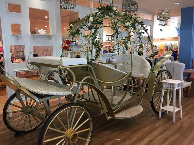 この「ザ・ティー・テラス」って以前からパステルカラーで統一されてて、ちょっと大人テーストのバービーハウスみたいでしたが・・・最近はシンデレラ馬車みたいなテーブル席も追加されてて、ちょっとビックリ!