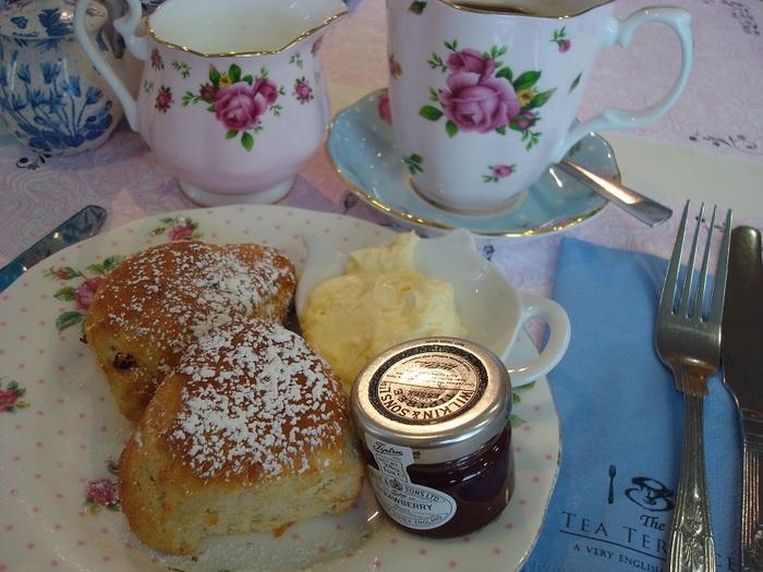外側がカリッ、中が優しくサクッ、の黄金「カリサク」スコーン♪クロッテド・クリームとジャムも、惜しみなく添えて・・・。