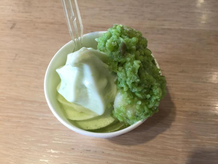 ずんだソフトにずんだもちがトッピングされて、ずんだ尽くし!