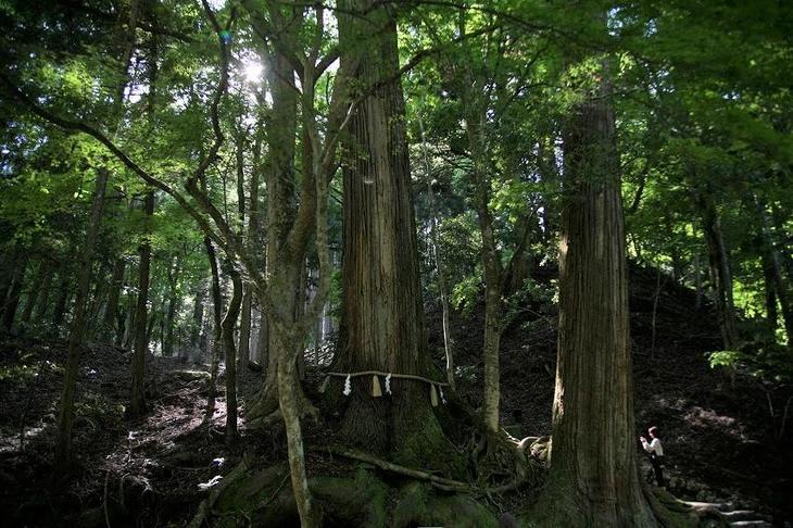 こちらは、結社から奥宮に続く参道沿いに立つ「相生の杉」。