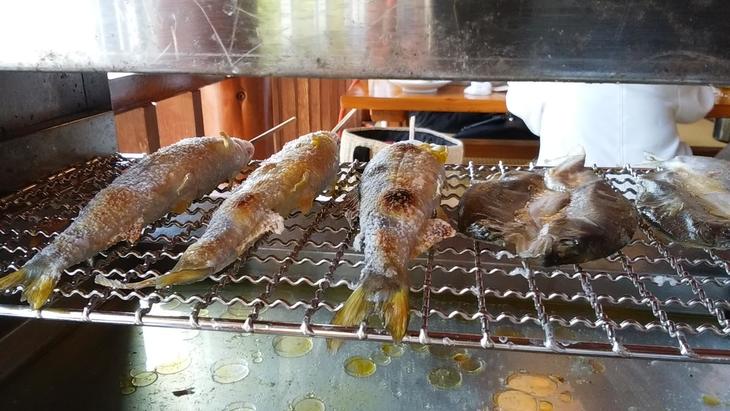 ●鮎は自分で焼きます。案外自分でもうまく焼けました。