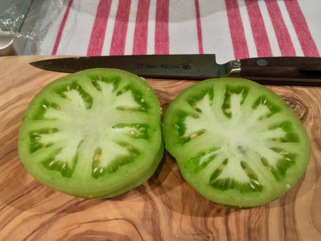 こんな感じになった。 メインの緑トマトは多少乱暴にかき混ぜても崩れないけど熱を加えるとやっぱり色が飛んでしまうのを学んだ。