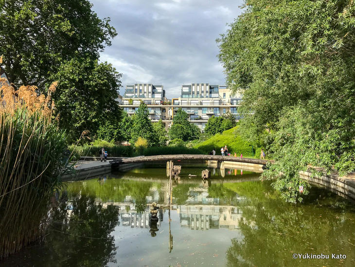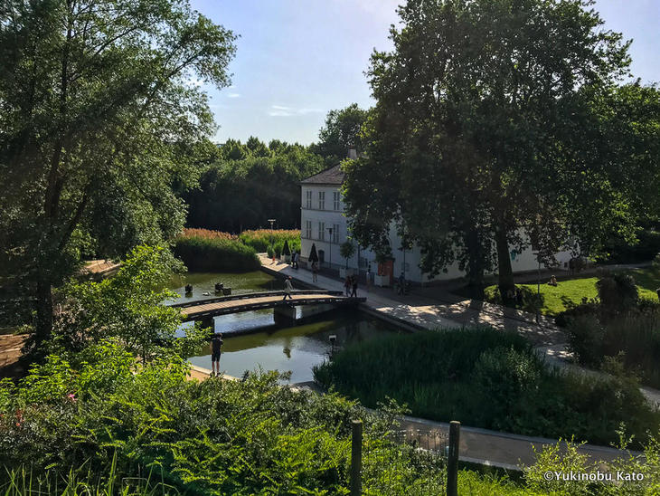 パリ市内にある公園は、ベルサイユ宮殿の庭園のような幾何学的な配置の公園ばかりではありません。時代とともにさまざまなスタイルのものが造られてきました。その中でも12区にあるベルシー公園は、水辺の生態系などを人工的に再現している公園です。元は倉庫などが集積していた地区を再開発して造られました。