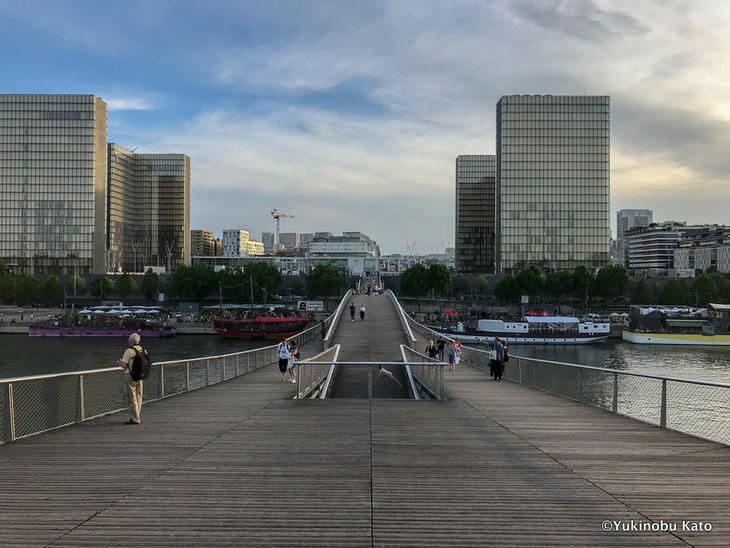 ベルシー地区は散策コースとしても最適です。ベルシー・ヴィラージュからベルシー公園を経て、シネマテーク・フランセーズ、シモーヌ・ド・ボーヴォワール橋でセーヌ川を渡って対岸の左岸にあるフランス国立図書館まで、車道を渡らず遊歩道が整備されています。距離にして1キロメートル強。軽い散歩に最適の距離です。