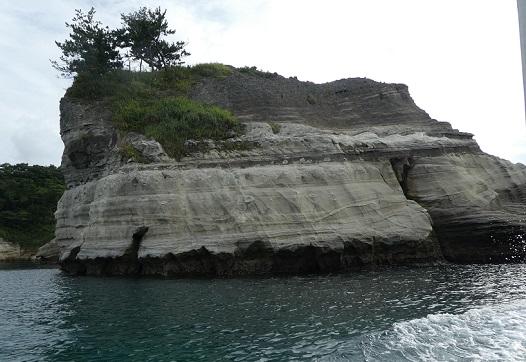 堂ヶ島最大の魅力である天窓洞は、白い凝灰岩からできており地下には蜂の巣のようなトンネルができています。
