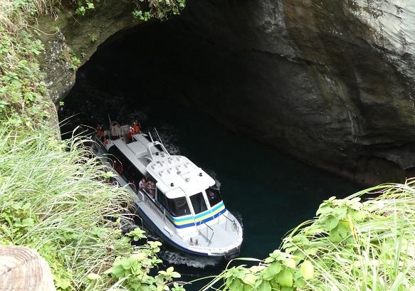 こちらの遊覧船に乗って洞窟めぐりへと出航します!