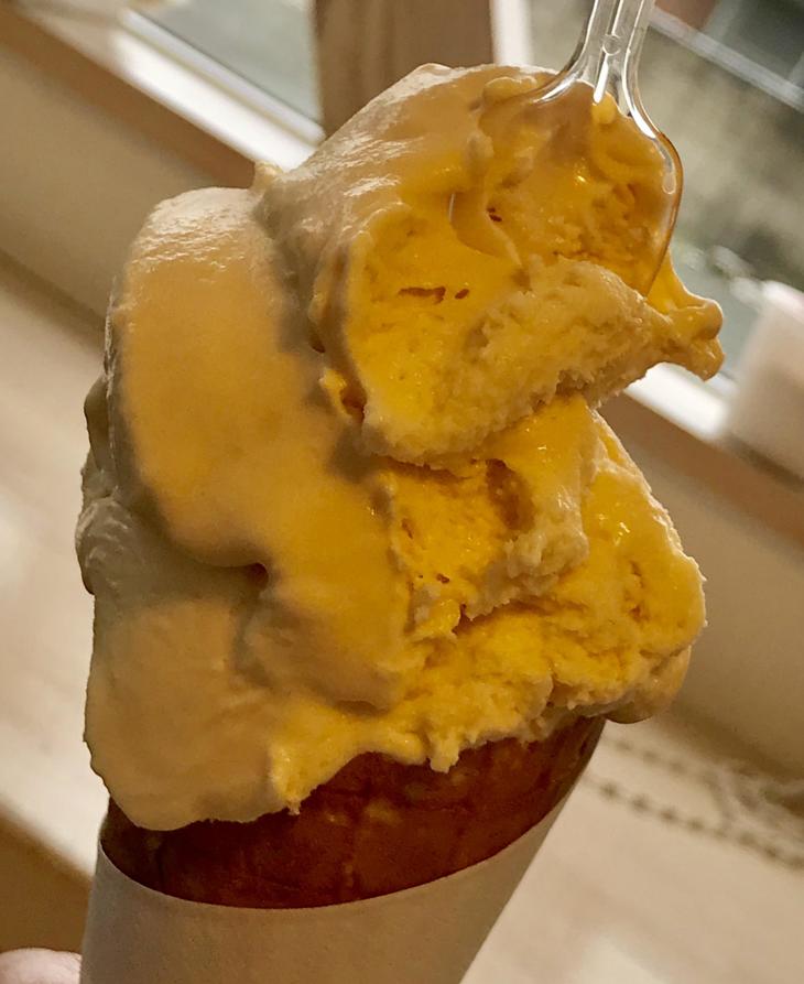ジェラートアイスです。近くの牧場から毎日、新鮮な生乳を仕入れ、農家からは採れたての果物や野菜を惜しみなく使います。こだわり抜いた贅沢な本格ジェラートを是非一度お試し下さい。