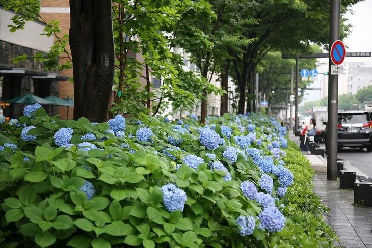 京都市内を東西に走る御池通りに咲く紫陽花も美しいです。