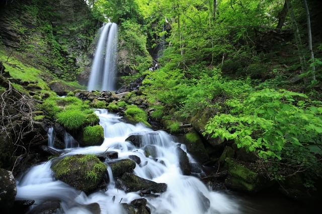 滝から続く流れを見ると、苔生し具合からこの程度の水量は常時維持されているようです。