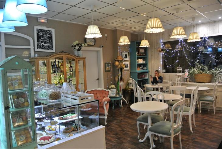 今回ご紹介するのは、おそらく観光に来た方はすぐ近くのホテルに宿泊しない限りは行かないであろうと思われる隠れ家的なカフェです。今までのスペインにはなかったかわいいインテリア。名前もまたかわいいLa Pequeña Pastelería de Mamá(ラ・ペケーニャ・パステレリーア・デ・ママ:ママの小さなパティスリーという意味)です。