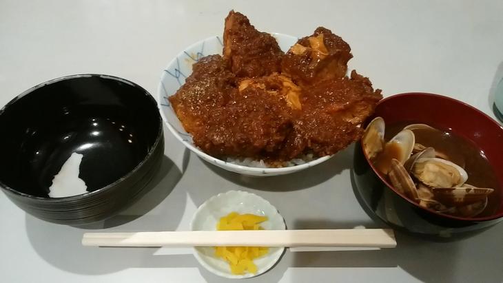 私は定番の味噌カツ丼を頼みましたが、このお店が初めてだった若手社員くんは「僕は大盛りを食べます!」と言って、無謀にも大盛りをオーダーしました。