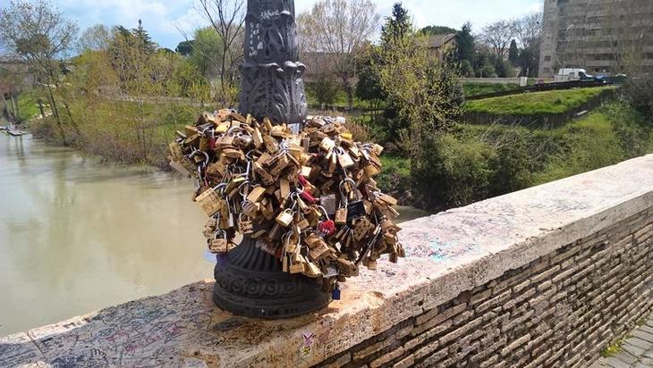 2006年からは、この橋の上にある街灯に南京錠がかかるようになり、”愛の儀式”をする橋としてカップルの間で広く知られるようになった。それもイタリア人作家による小説で2007年に映画化された”I Want You”(伊語:Ho voglia di te)の影響によるもので、その儀式自体はカップルで南京錠をかけて、川に背を向けて鍵を投げ入れるという流れになっているようだ。しかしながら、景観を損なうのと無数の南京錠がかけられたことにより街灯がその重みで折れてしまう事件が2007年の春頃に起きたため、ネット上の仮想空間(ヴァーチャル)で南京錠をかけるというウェブサイトまで作られたようだ。