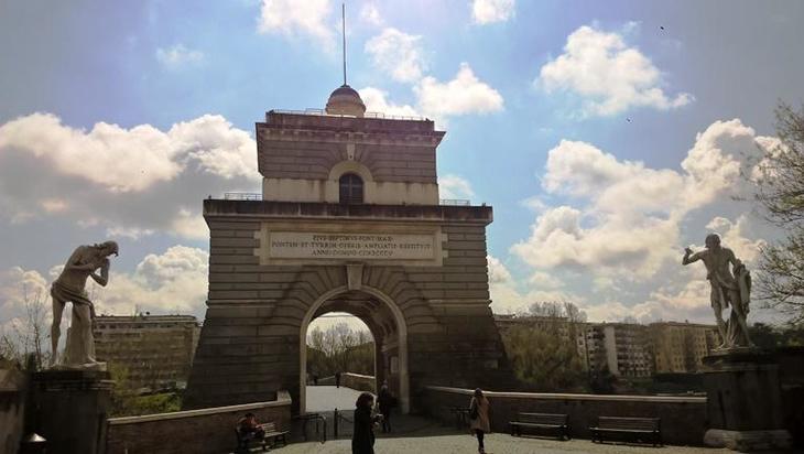 また、ミルヴィオ橋を渡りきったところにあるミルヴィオ橋広場(伊語:Piazzale di ponte Milvio)には、1937年に建てられ、ローマ教皇のピウス11世(伊語:papa Pio XI)を記念して造られたグラン・マーデレ・ディ・ディオ教会(伊語:Chiesa della Gran Madre di Dio)と言われるカトリック教会があります。この教会でのシンボル的な存在のピウス11世は、19世紀以来、お互いに独立国として認めないという断絶状態にあったバチカン市国とムッソリーニのイタリア政府を和解させるという政治的な功績があったとも知られています。