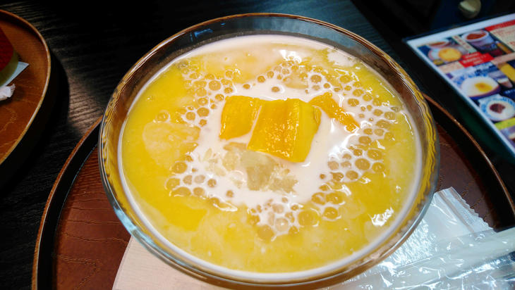 香港デザートの定番「豆腐花」(420円)はオレンジの砂糖がかかっているオリジナル(香港式)とミルクをかけるマカオ式のいずれかを選びます。また、夏季限定で1日20杯限りの「マンゴータピオカ」(580円)はマンゴー、タピオカだけではなく、中にグレープフルーツの果肉をいれることで適度な食感と酸味を通してのさっぱり感を演出。何度も修正を加えて完成した1品です。