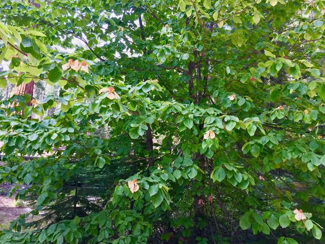 春には白い花を咲かせていた北アメリカ西海岸のネイティヴプランツ "パシフィック・ドッグ(Pacific Dogwood/白いハナミズキ)" 花びらが付いたまま種ができてる。