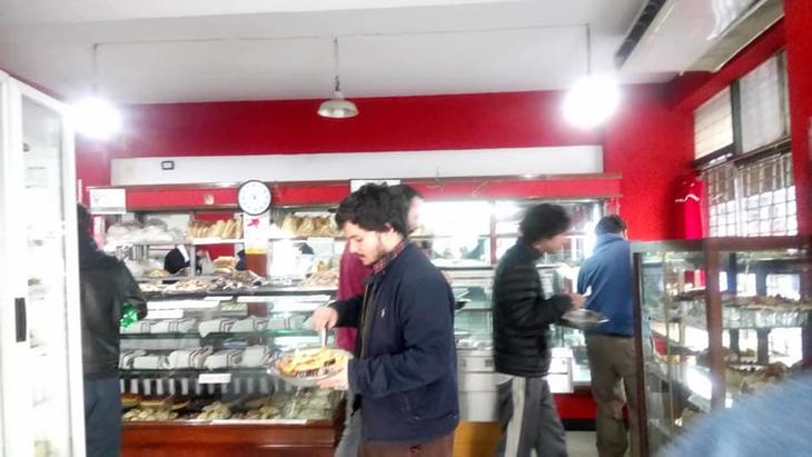 お店はハーフタイムで喫茶店側はリラックスムード。パン屋側は急いで朝ごはん用のファクトゥーラと呼ばれる菓子パンを