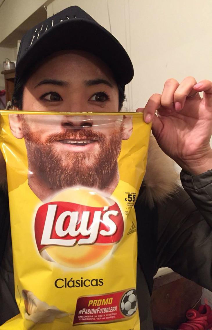 ポテトチップはメッシのおひげバージョン。