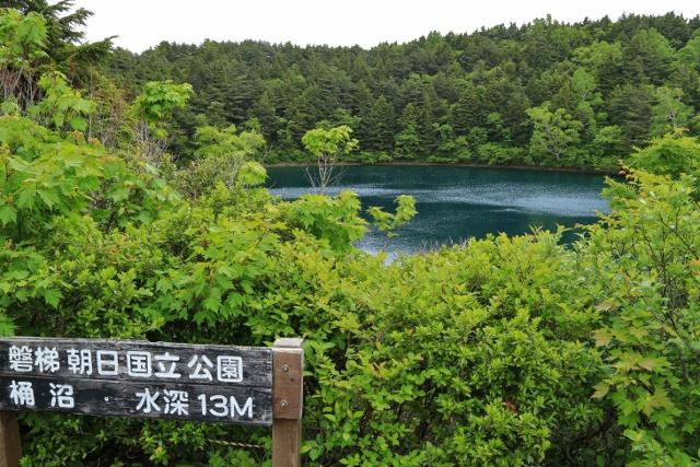 桶沼は、吾妻小富士と相対する成層火山の火口湖で、直径約150m、水深約13m。