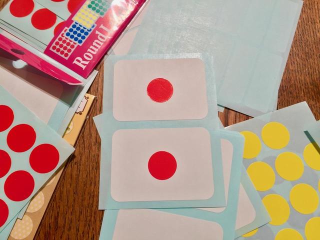 白い宛名シールに赤い丸シールで可愛い日の丸完成