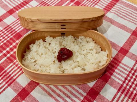 今日の弁当はもちろん "日の丸弁当"準備完了。