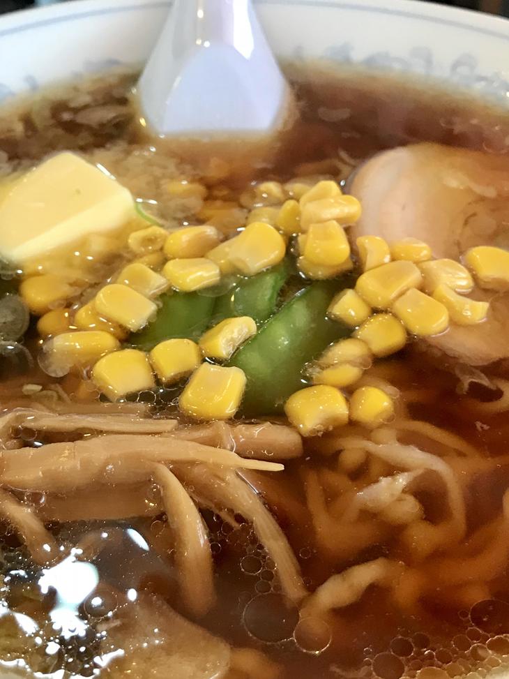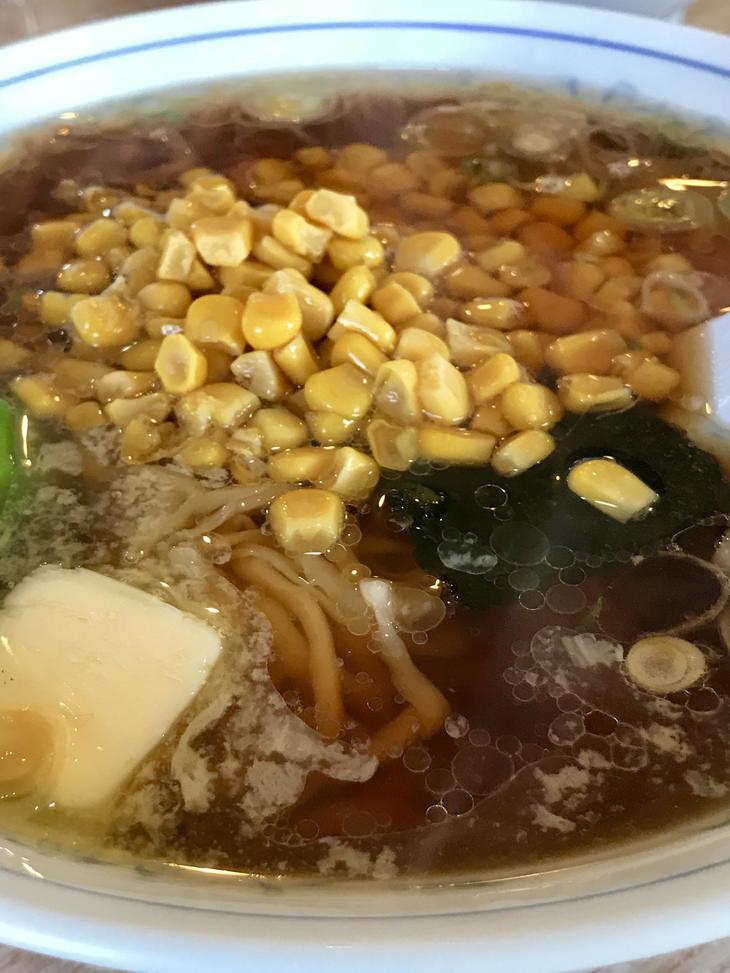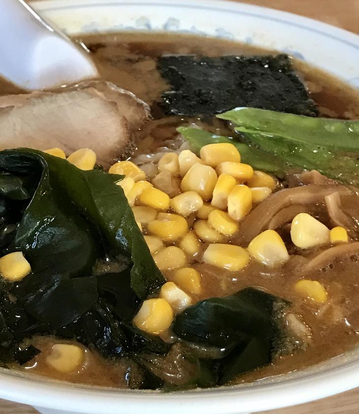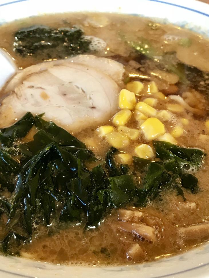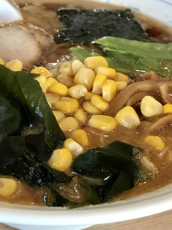 金精ラーメン(醤油味・ゴマダレ・ワカメ・チャーシュー・コーン入り)