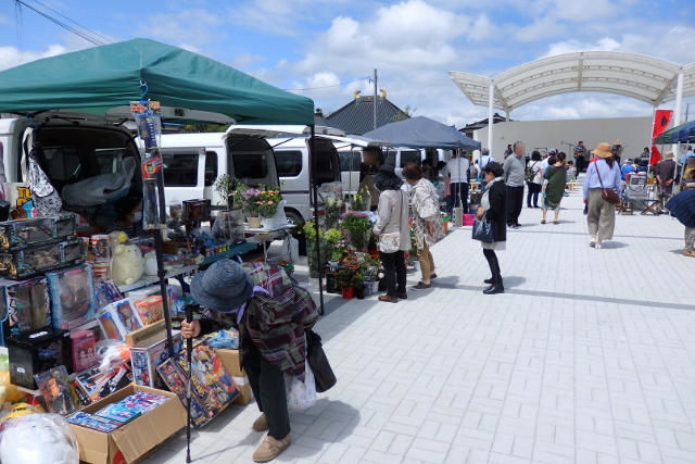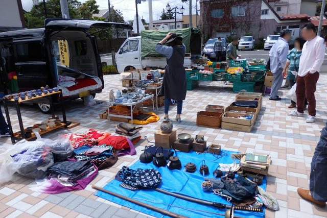 旬の野菜や果物、衣類、生活雑貨、工芸品や骨とう品等々、様々な商品が揃っています。