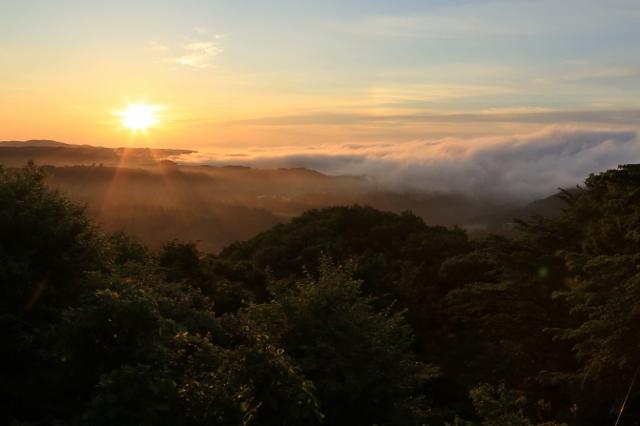 桧枝岐に向かう途中、R289沿いの座頭ころばし展望台(西郷村)から望む朝日
