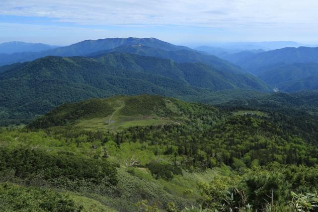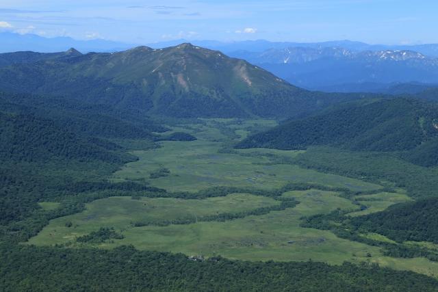 8合目を過ぎ、熊沢田代とその先に会津駒ヶ岳を望みます。
