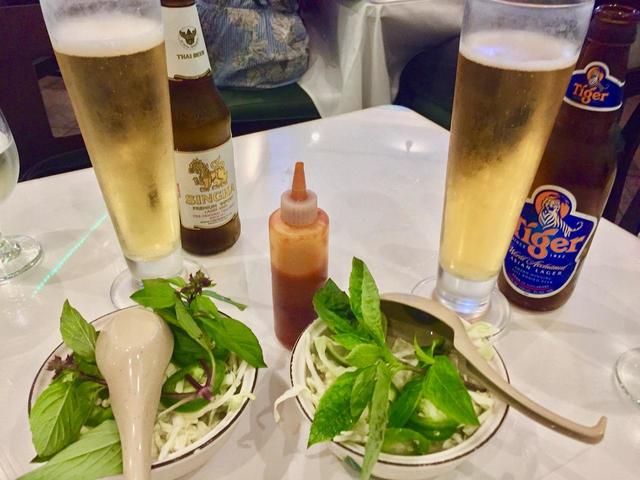 ビール(5ドル)Singha Tigerと バジルの小皿