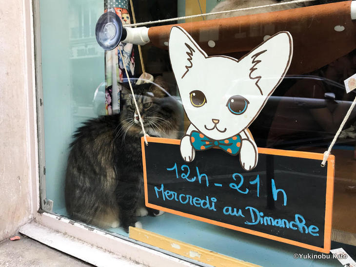 お店の最寄り駅はヴォロンテール駅。駅から徒歩すぐで公共交通機関でのアクセスはとても良いです。店内にいる猫が、窓際で昼寝をしているため、通りがかりの人が猫をのぞいていたり、散歩中の犬が興味を示して飼い主が止まっていたりします。