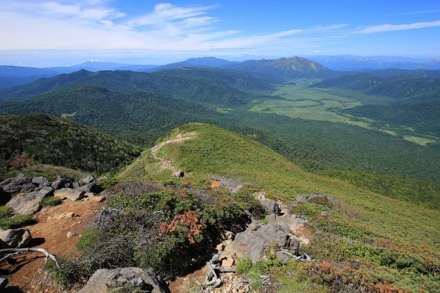 絶景の燧ヶ岳山頂を後にし、尾瀬ヶ原を眼下に見晴新道を下って行きます。