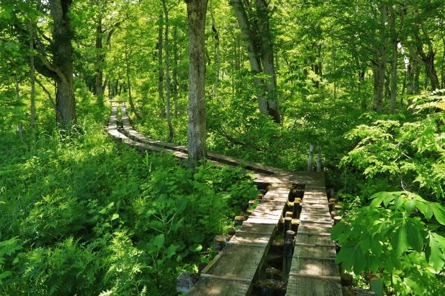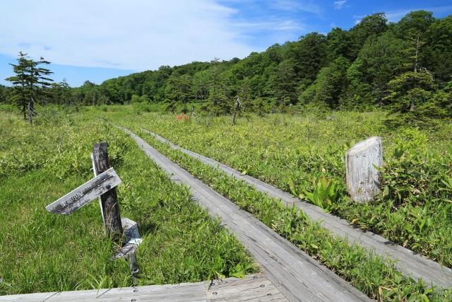 尾瀬沼からの遊歩道と合流し、尾瀬ヶ原温泉東端の見晴へと向かいます。