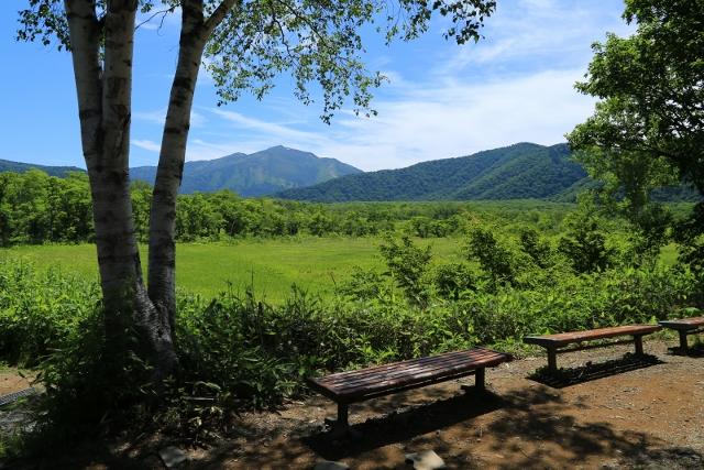 柴安嵓の山頂から、見晴新道入口とその先に尾瀬ヶ原を俯瞰
