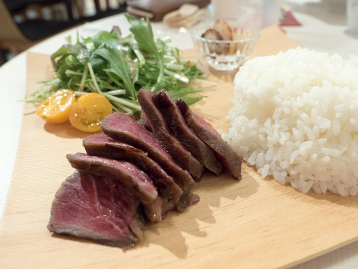 ディナーメニューで人気の"ぶどう酒漬牛ステーキ"をランチセット(¥1,000)で
