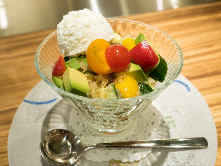 「夏野菜とキヌアのチョップドサラダパフェ」(¥980)。
